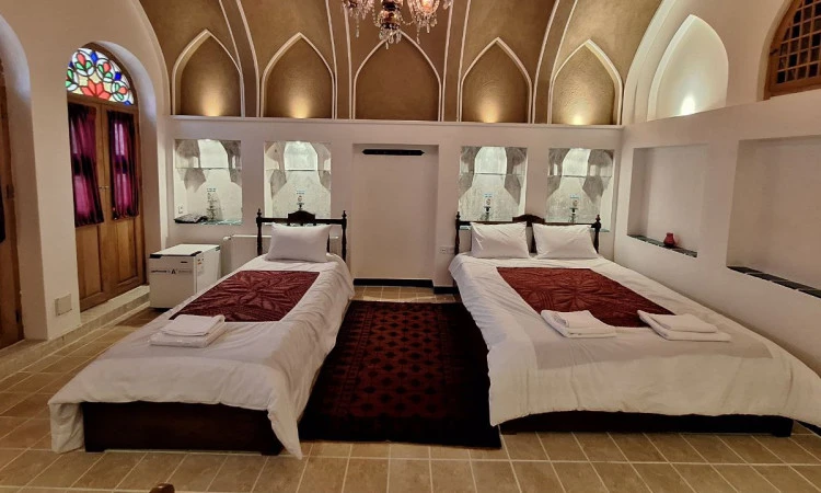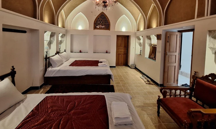 اصفهان - کاشانهتل سنتی سرای دلنواز، زندگی در زمان افشاریه را تجربه کنید. این هتل با معماری سنتی و فضایی دلنشین، اقامتی خاطرهانگیز را برای شما رقم میزند. ویژگیها: موقعیت مکانی عالی: در بافت سنتی و قدیمی شهر، چند قدمی خانههای تاریخی کاشان. 6 اتاق مستر: با امکانات رفاهی کامل شامل سرویس بهداشتی فرنگی و حمام اختصاصی. صبحانه رایگان: لذت شروع روز با صبحانهای متنوع و خوشمزه. کافی شاپ: فضایی دنج برای استراحت و صرف نوشیدنی. محوطه حیاط: مناسب برای دورهمی و شبنشینی. امکانات اتاق: یخچال، سیستم سرمایشی کولر گازی و سیستم گرمایشی شوفاژ. آشپزخانه مرکزی: برای امور آشپزی در اختیار مهمانان قرار میگیرد. دسترسی آسان: سوپرمارکت و نانوایی: 5 دقیقه پیاده بازار سنتی: 4 دقیقه پیاده خانههای تاریخی: 5 دقیقه پیاده هتل در بخش ورودی و اتاقها دارای تعدادی پله است، لذا برای مهمانان همراه با سالمند، کودک و افراد دارای معلولیت، این نکته را در نظر داشته باشید.