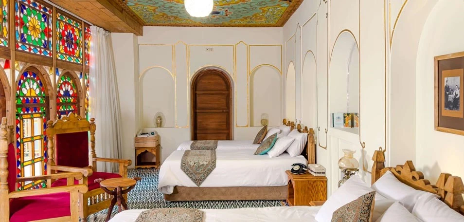 فارس - شیرازبوتیک هتل ایرانمهر با 14 اتاق، شامل 7 اتاق دو تخته، 3 اتاق سه تخته و 4 اتاق چهار تخته، ظرفیت پذیرایی از حداکثر 38 گردشگر را دارد. این هتل سنتی با فضایی متفاوت در قلب منطقه تاریخی شیراز، اقامتی دلپذیر را برای میهمانان فراهم میسازد. تمامی اتاقها دارای سرویس بهداشتی (توالت فرنگی) و حمام اختصاصی میباشند. سرویس بهداشتی ایرانی نیز به صورت مشترک در محوطه در دسترس است. ارائه انواع غذاهای سنتی و محلی از جمله کباب، جوجه، کلم پلو شیرازی، قرمه سبزی، قیمه و پلو مرغ (با هماهنگی قبلی). راهنمای محلی پرسنل مسلط به زبان انگلیسی کافی شاپ شربت خانه عکاس خانه سیستم گرمایش و سرمایش اسپلیت پارکینگ: فاقد پارکینگ اختصاصی (استفاده از پارکینگ عمومی نزدیک به هتل) بوتیک هتل ایرانمهر با امکانات و خدمات متنوع، تجربهای خوشایند از اقامت در شیراز را برای شما رقم خواهد زد.