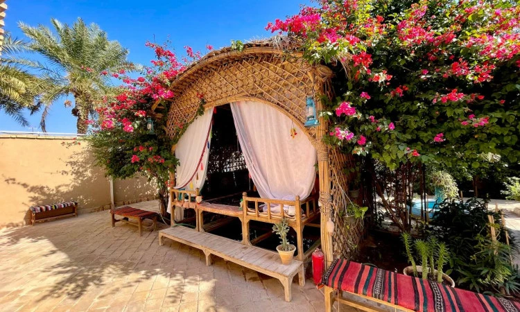 کرمان - کرمانخانه سنتی کاشکیلو، با بهرهگیری از معماری بومی و تلفیق آن با اصول مدرن، فضایی فرهنگی، اقامتی و هنری را در قلب بافت تاریخی شهداد فراهم آورده است. هدف ما، احیا و پاسداشت فرهنگ و هنر غنی منطقه، در کنار تأمین رفاه و آسایش حداکثری مهمانان عزیز، بوده است. موقعیت: واقع در طبقه اول خانه سنتی کاشکیلو (اتاقهای ویژه). ابعاد: ۱۶ متر مربع. ظرفیت: ۲ نفر (به صورت تخت خواب). سرویس خواب: شامل پتو، تشک، بالشت و ملحفه. سرویس بهداشتی و حمام اختصاصی. اینترنت رایگان. نورگیر عالی. چشمانداز رو به بیرون (نخلستانها و باغهای گل و نارنج). ظرفیت کل: ۶۰ نفر. پارکینگ: اختصاصی در اختیار مهمانان. آشپزخانه: امکان استفاده از گاز و وسایل آشپزی با هماهنگی قبلی میزبان. تفریحات: زمین بازی شامل پینگ پنگ، فوتبال دستی، و بازیهای فکری و گروهی. قوانین مربوط به کودکان: کودکان ۴ تا ۶ سال: نیمبها. کودکان ۶ سال به بالا: به صورت کامل محاسبه میشود. خدمات جانبی (با هزینه جداگانه): تورهای سافاری. تور نجوم و رصد آسمان. هماهنگی ترانسفر. راهنمای بومی. جاذبههای تاریخی و گردشگری: کلوتها، آبانبار، نخلستان، شهر کوتولهها، آسیاب آبی، گلدانهای کویری، کاروانسرای تاریخی، کلیسای قدیمی، بازار قدیمی. مراکز خدمات ضروری: سوپرمارکت، بیمارستان و داروخانه، پمپ بنزین، تعمیرگاه خودرو.